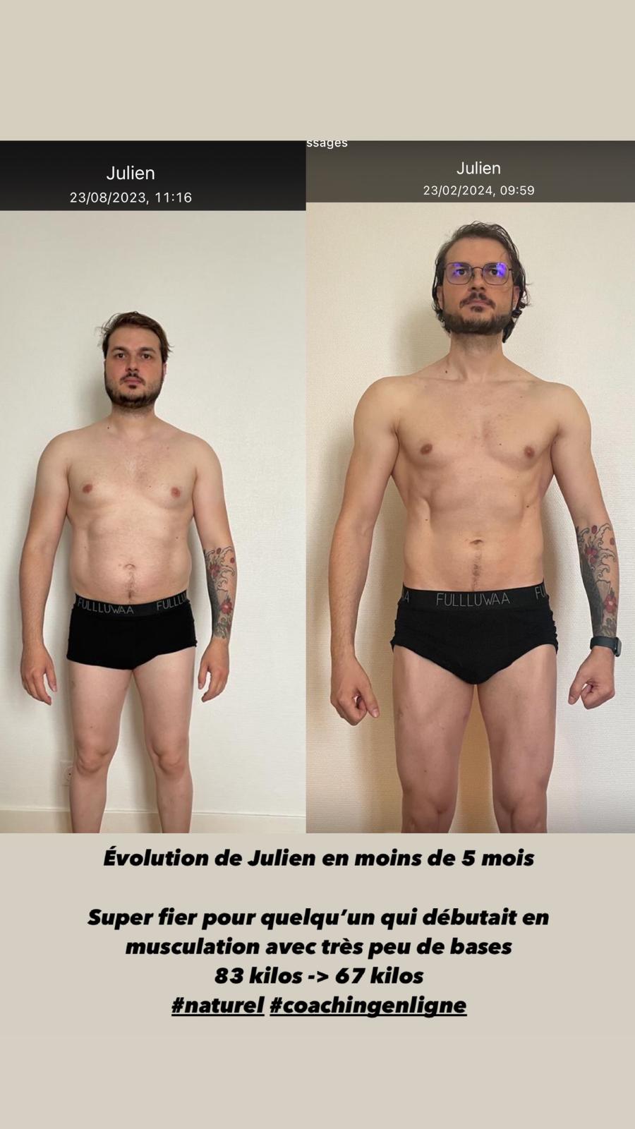 Actuellement 4 mois de coaching avec Flo, que dire... A l'écoute et disponible, les résultats parlent d'eux mêmes, une évolution incroyable de mon physique naturel! Tout est sous contrôle et sans risque pour la santé, des trainings axés sur les points faibles et une diet fixée en fonction de l'objectif! Une collaboration faite pour durer, Merci!
